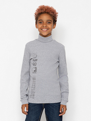 Водолазка для мальчика из трикотажа в рубчик, гладкокрашенная, манжеты по низу рукава.
