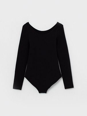 Купальник с длинным рукавом. Вырез горловины и проймы ножек окантованы бейкой из основного полотна.