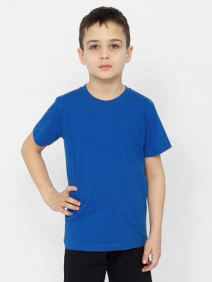 Футболка детская с коротким рукавом. Вырез горловины круглый, обработан притачной бейкой из рибаны с эластаном.