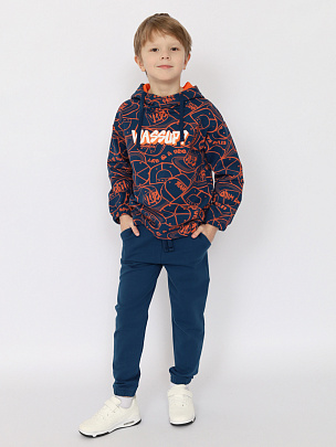 Костюм для мальчика (толстовка, брюки) индиго-оранжевый