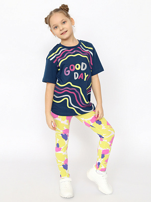 Комплект для девочки (футболка, брюки модель "легинсы") темно-синий