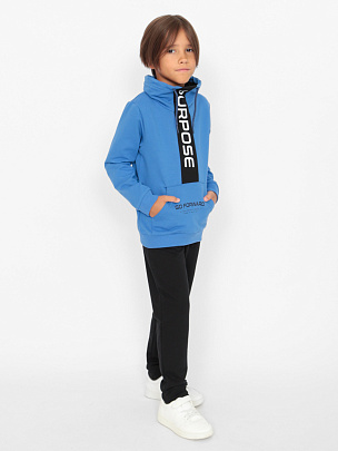 Брюки для мальчика с накладными карманами с клапаном. Нижние срезы брюк оформлены притачными манжетами из полотна с эластаном. Пояс притачной, с резинкой и функциональным шнуром. На карман настрочена декоративная жаккардовая этикетка.