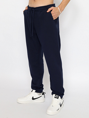 Брюки с карманами и притачным поясом из полотна с добавлением лайкры, в пояс вставлен функциональный шнур. Нижние срезы брюк обработаны притачными манжетами из полотна с эластаном. Карман брюк декорирован вязаной нашивкой.